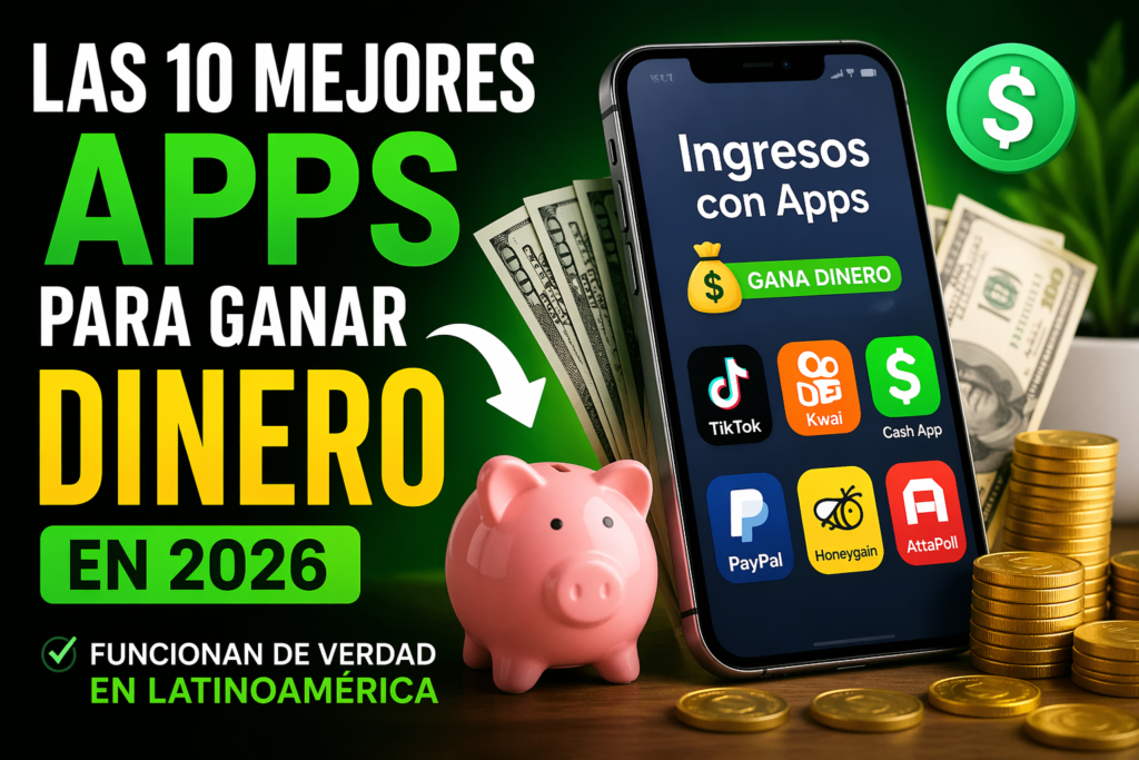 Las mejores apps para ganar dinero en 2026 que sí pagan en Latinoamérica. Descubre cómo generar ingresos desde tu celular sin inversión y empieza hoy mismo a ganar dinero online con aplicaciones reales y seguras.